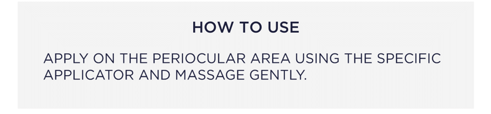 Instructions: Apply on the eye contour and gently massage. Do not apply to the eyelids.